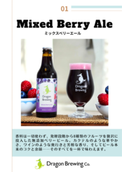 原材料:麦芽(ドイツ、イギリス産)、糖類、濃縮果汁(グレープ、ブルーベリー、クランベリー、カシス)、果実(ラズベリー、ブラックベリー、クランベリー、カシス、レッドカラント、リンゴンベリー)、ホップ / 炭酸ガス