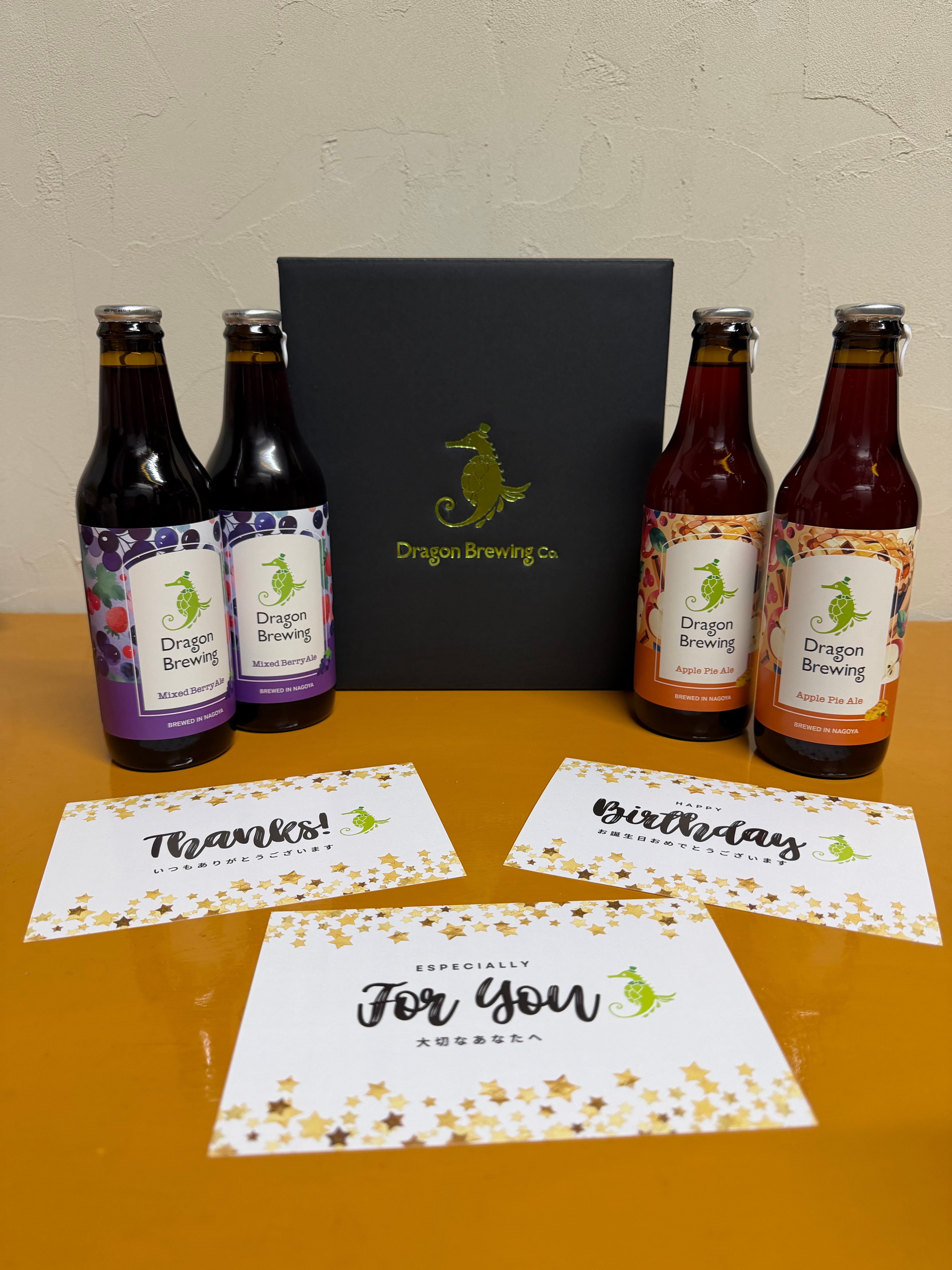 黒 × グリーンのバイカラーに、Dragon Brewingロゴを箔押しした高級感のあるデザイン。特別なギフトにぴったりです。